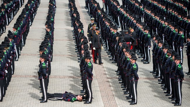 johnwatsn: “thetrekkiehasthephonebox: “ gridbugs: “ natgeofound: “ Irish Guards remain at attention after one guardsman faints in London, England, June 1966.Photograph by James P. Blair, National Geographic ” Something about this photo is hySTERICAL TO ME ” oh dear ” Guard fainting during the King...